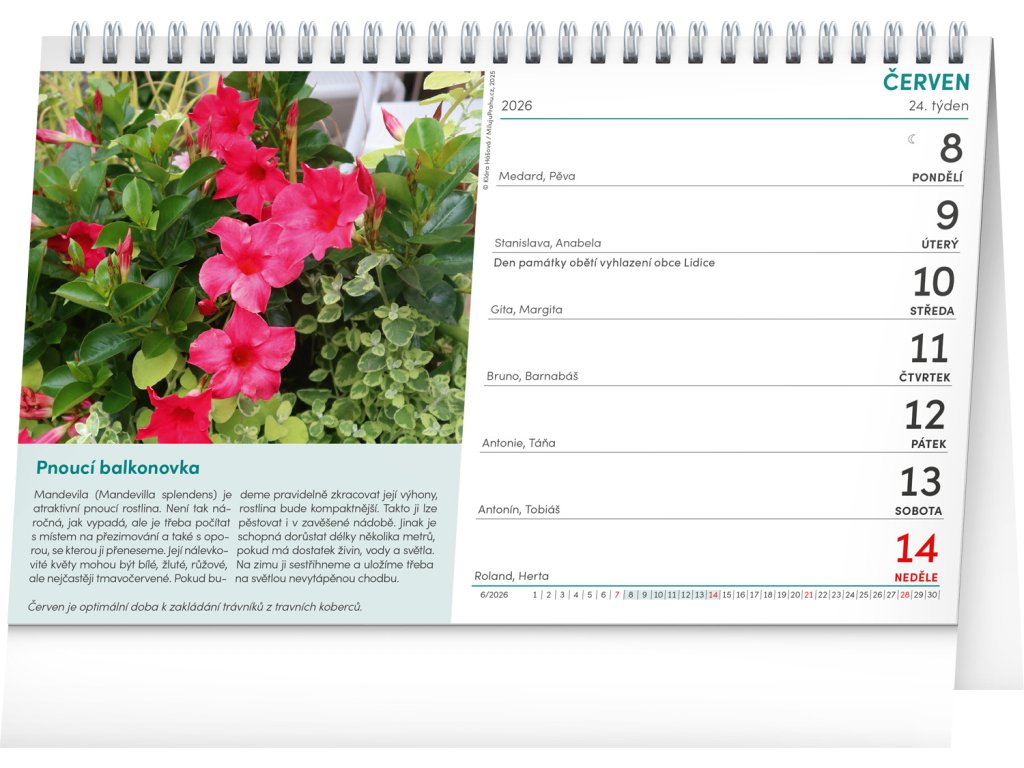 Praktický stolní kalendář plný užitečných rad a tipů pro úspěšné zahrádkáře. Na zahradě je celý rok co dělat. S naším kalendářem se detailně seznámíte se sezónními zahrádkářskými pracemi a najdete zde i řadu tipů, které vám zaručí hojnější úrodu. Praktický a přehledný kalendář vás seznámí s tím, co je nejlepší udělat pro vaši milovanou zahradu či zahrádku. Stolní kalendář s českým kalendáriem obsahuje svátky a památné dny, měsíční fáze a přehled na celý rok 2026 a 2027.Doplňkové parametry