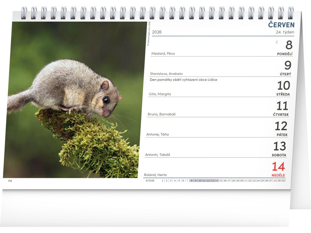 Oblíbený stolní kalendář obsahuje spoustu důležitých informací pro každého myslivce. Naleznete zde doby východů a západů slunce a měsíce v České republice, informace o aktivitách zvěře a přírodních aktualitách v průběhu roku a také přehled o době lovu srstnaté a pernaté zvěře. Tyto praktické informace doplňují nádherné fotky divoké zvěře od fotografa Miroslava Hlávka a kalendárium s českými jmény, svátky a památnými dny.Doplňkové parametry