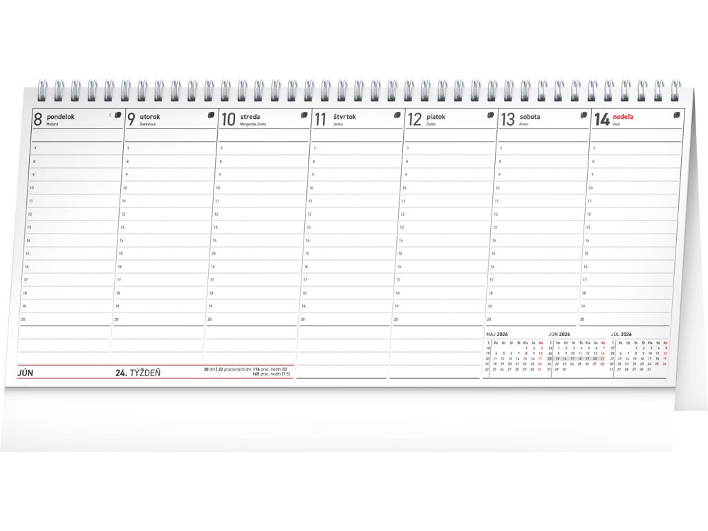 Stolní kalendář se sloupcovým kalendáriem obsahuje všechny termíny daňových povinností, slovenská jména, svátky a památné dny a tříměsíční přehled u každého týdne. S tímto kalendářem již nezapomenete na žádnou svou schůzku či jednání, a ještě vám zbyde dostatek místa na další poznámky a záznamy.Doplňkové parametry