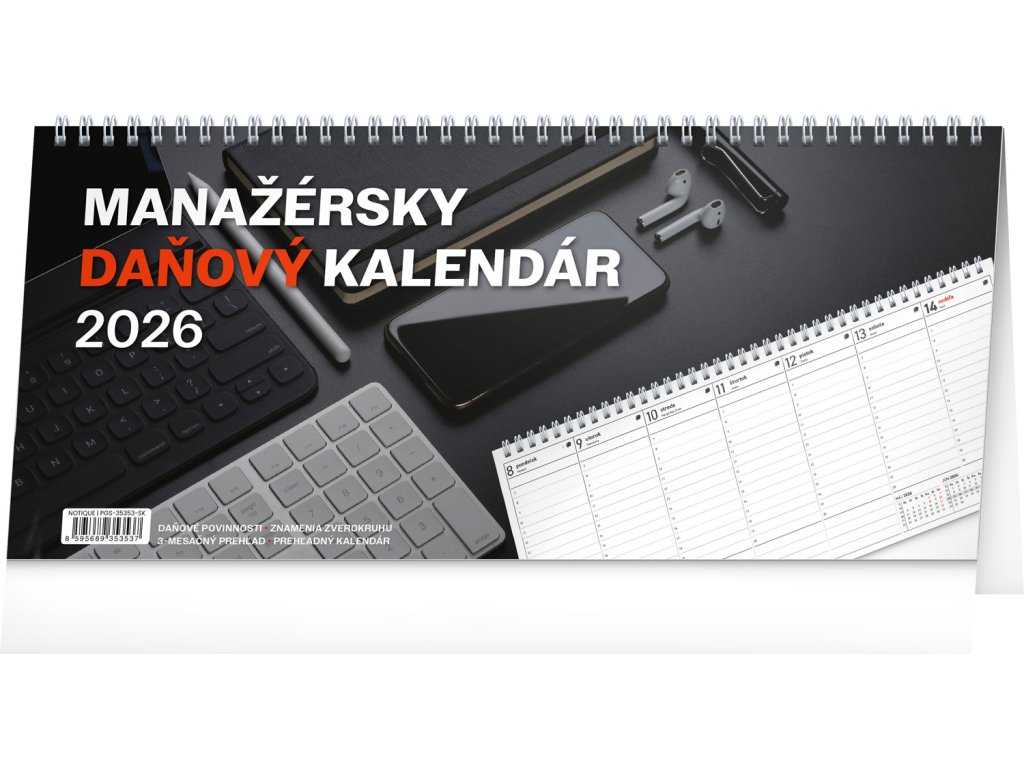 NOTIQUE Stolový kalendár Manažérsky daňový 2026, 33 x 14,5 cm