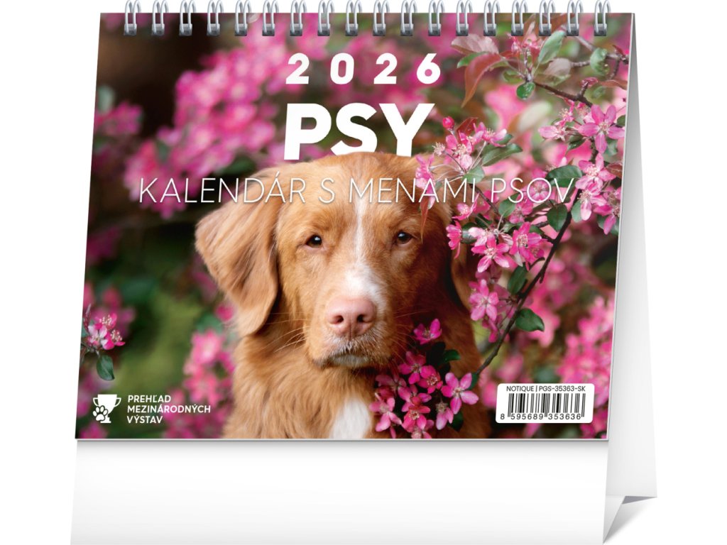 NOTIQUE Stolový kalendár Psy – s menami psov 2026, 16,5 x 13 cm