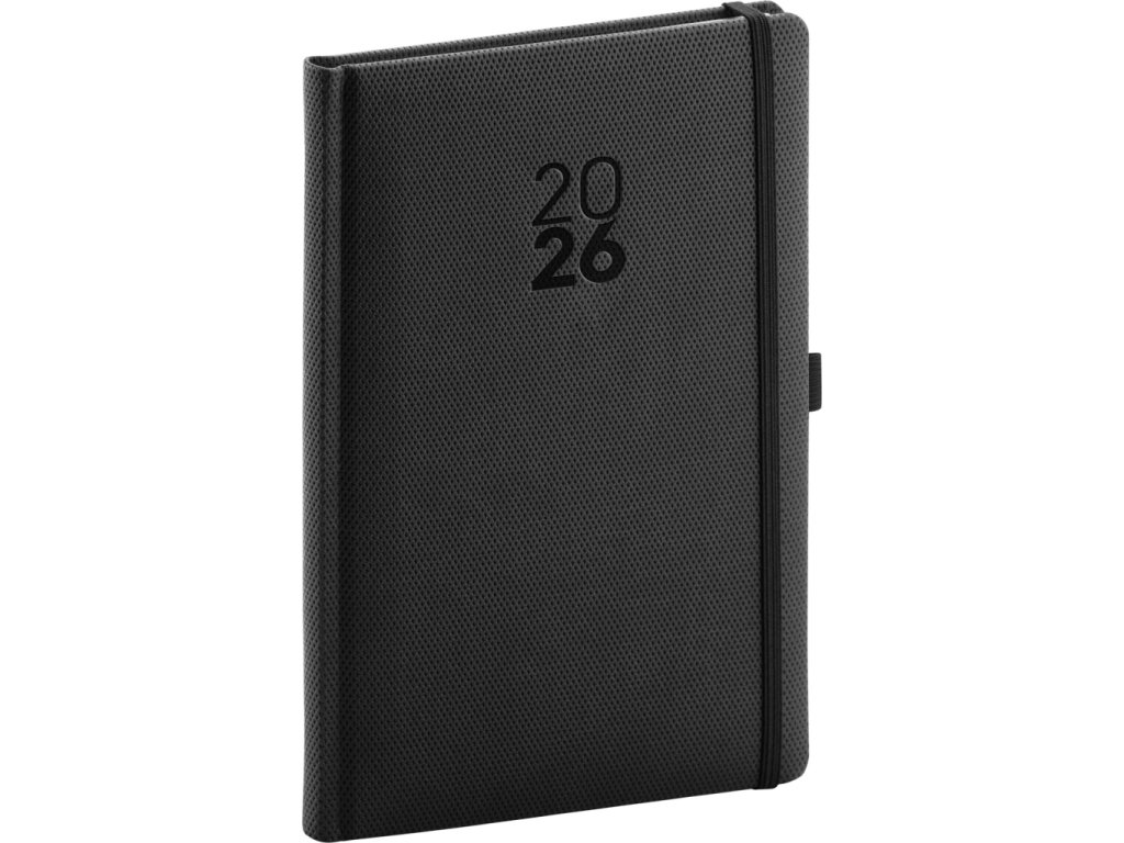 Týdenní diář Diamante 2026 v černé barvě. Povrch diáře má jemnou strukturu připomínající výbrus diamantu a je ideální pro všechny typy ražeb. Diář má zakulacené rohy, poutko na tužku a elastickou gumičku. Týdenní rozvrh s česko-slovenským kalendáriem a doplňkovou angličtinou, němčinou, maďarštinou a ruštinou.• kalendárium od prosince 2025