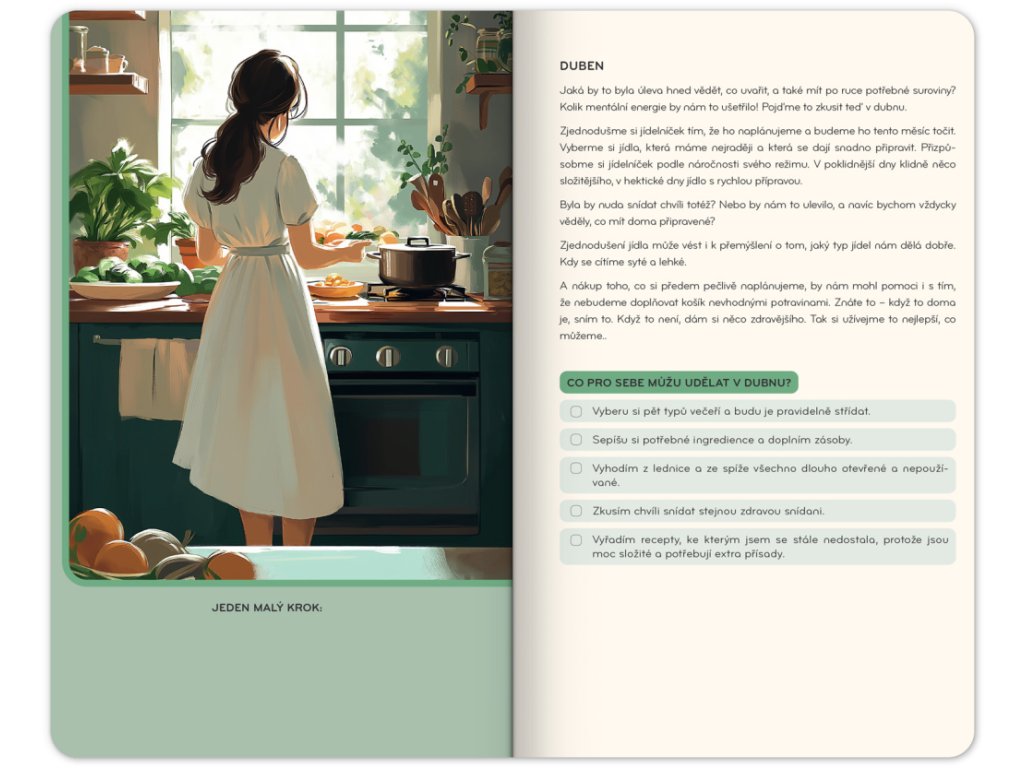 Laskavý diář vás provede rokem plným zjednodušování – každý měsíc se zaměřuje na jednu oblast, ve které si můžeme život zlehčit a tolik nezahlcovat zbytečnostmi. Přináší praktické tipy, inspiraci i jemné pobídky k uvolnění a nalezení radosti v běžných věcech, které jsou ve skutečnosti mnohem významnější, než se zdají. Vypuštěním zbytečností, nejen těch materiálních, vytváříme prostor pro to, co je pro nás opravdu důležité. Diář má horizontální rozložení s českým kalendáriem a prostorem pro poznámky. Součástí je i praktický měsíční přehled, ideální pro plánování dovolených či prázdnin.Doplňkové parametry