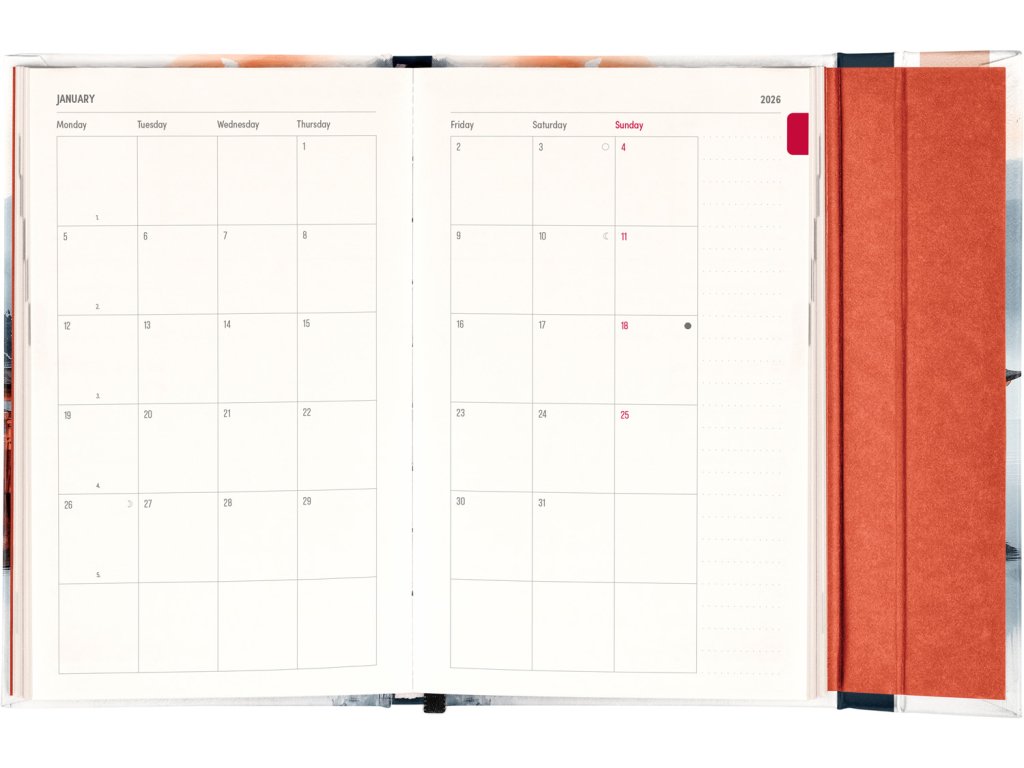 Týdenní diář v anglickém jazyce s mezinárodními svátky a praktickým magnetickým uzavíráním je ideální volbou pro ty, kteří chtějí mít své plány přehledně pod kontrolou. Nabízí sloupcové rozvržení jednotlivých týdnů s dostatkem prostoru pro každodenní poznámky. Součástí jsou praktické měsíční přehledy, ideální pro plánování dovolených či prázdnin.Doplňkové parametry