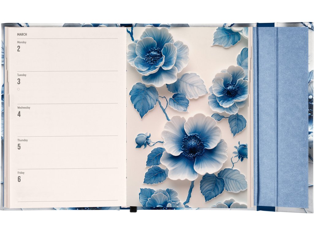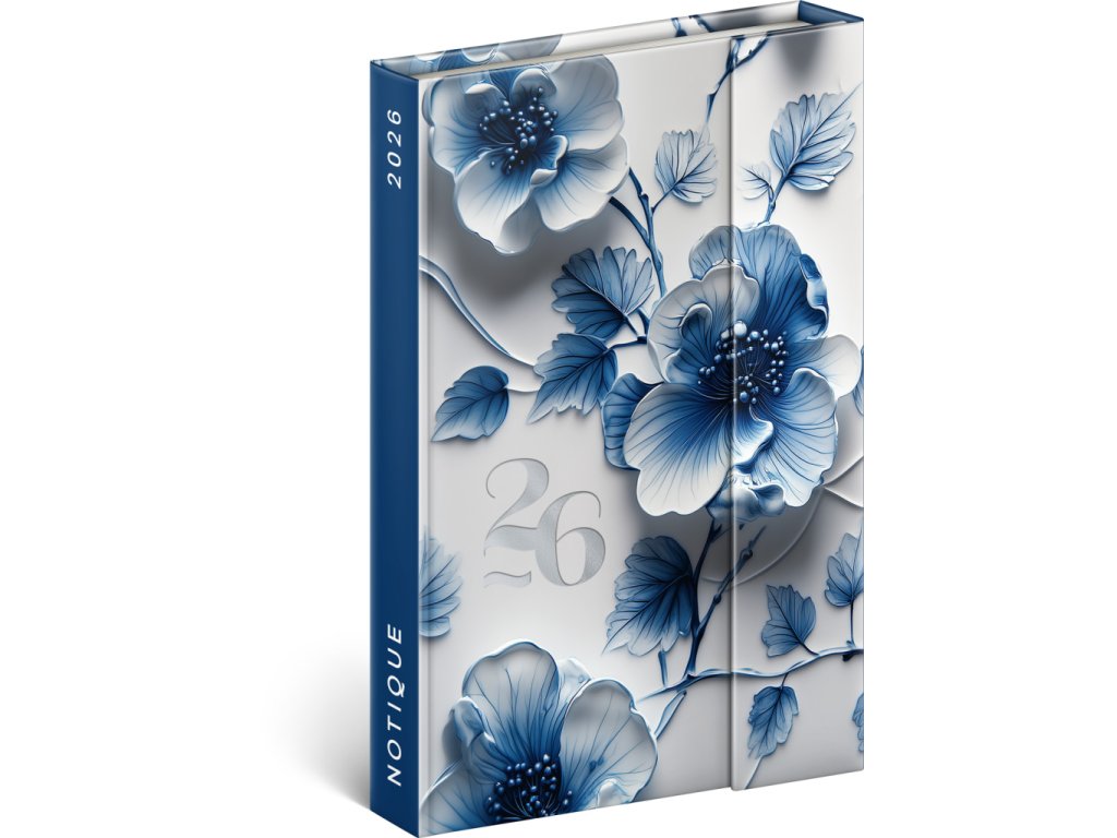 NOTIQUE Týdenní magnetický diář Porcelánový květ 2026, 11 x 16 cm