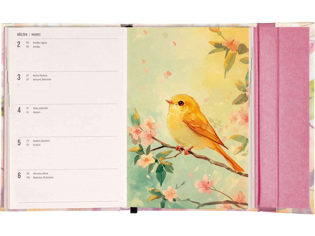 NOTIQUE Týdenní magnetický diář Ptáčci 2026, 11 x 16 cm