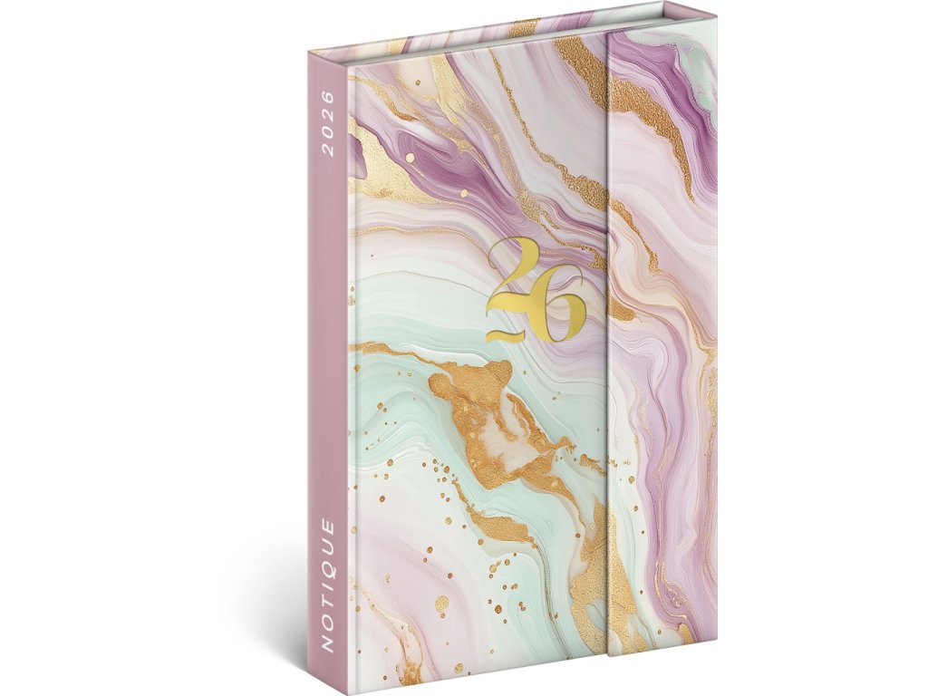 NOTIQUE Týdenní magnetický diář Růžový mramor 2026, 11 x 16 cm