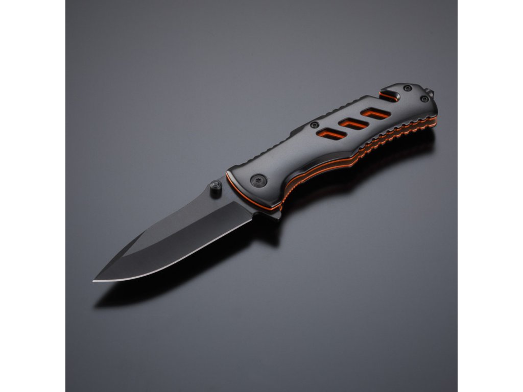 Masivní a odolný nouzový nůž Optima v novém kabátě, vyrobený z vysoce kvalitní nerezové oceli s titanovým povlakem pro lepší tvrdost a extra odolnost vůči korozi. Profilovaná rukojeť zakončena robustním rozbíječem oken a řezačkou automobilových pásů. Otevírá se oboustranným kolíkem, ideální pro praváky i leváky. Vybaven pojistkou zámku vložky, která zabraňuje náhodnému zavření během používání. Kovová spona umožňuje připnutí nože na opasek nebo ke kapse u kalhot. Tento nůž najde využití jako každodenní nůž i jako nouzový nůž. Ideální pro záchranáře, řidiče, vyznavače extrémních sportů.Doplňkové parametry