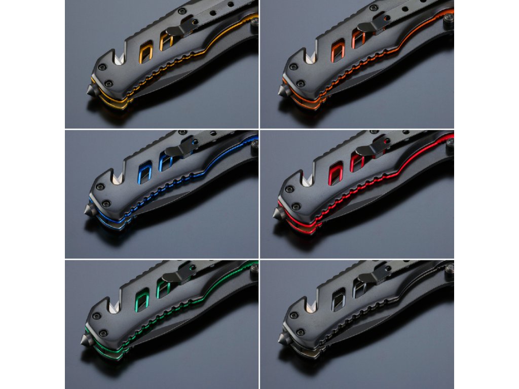 Masivní a odolný nouzový nůž Optima v novém kabátě, vyrobený z vysoce kvalitní nerezové oceli s titanovým povlakem pro lepší tvrdost a extra odolnost vůči korozi. Profilovaná rukojeť zakončena robustním rozbíječem oken a řezačkou automobilových pásů. Otevírá se oboustranným kolíkem, ideální pro praváky i leváky. Vybaven pojistkou zámku vložky, která zabraňuje náhodnému zavření během používání. Kovová spona umožňuje připnutí nože na opasek nebo ke kapse u kalhot. Tento nůž najde využití jako každodenní nůž i jako nouzový nůž. Ideální pro záchranáře, řidiče, vyznavače extrémních sportů.Doplňkové parametry