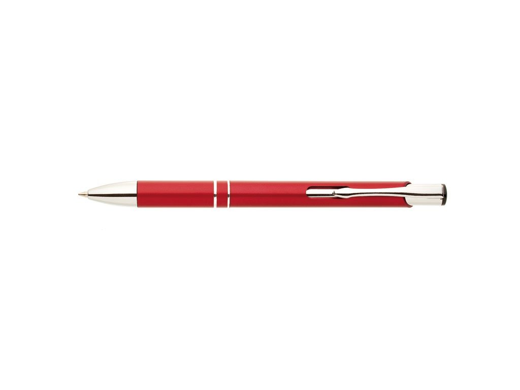 Plastové propisovací pero OIRA BLACK - červené. Pero je zdobené dvěma stříbrnými proužky. Na těle je zdobeno oválným výřezem. Pero má náplň velkoobsahovou, černě píšící.Doplňkové parametry