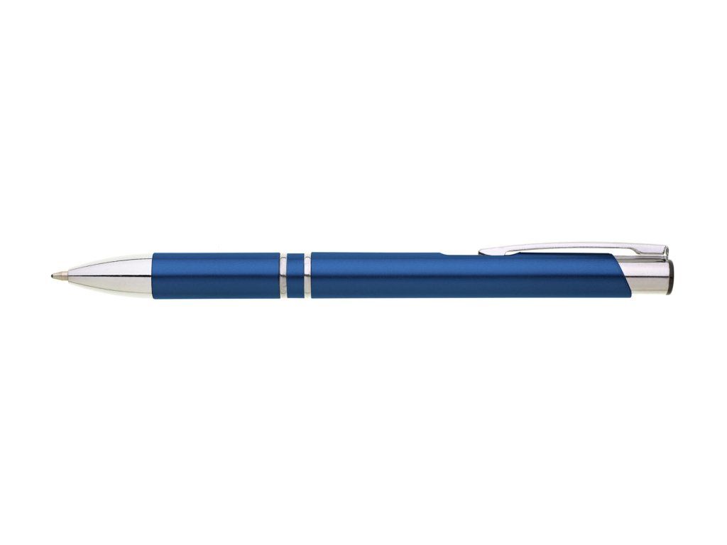 Plastové propisovací pero OIRA - modré. Pero je zdobené dvěma stříbrnými proužky. Na těle je zdobeno oválným výřezem. Pero má náplň velkoobsahovou, modře píšící.Doplňkové parametry