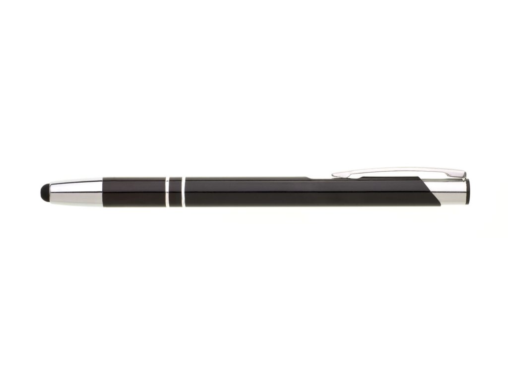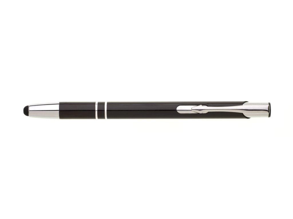 Černá varianta oblíbené propisky ORIN, tentokrát s ukončením TOUCH. Lesklé tělo se dvěma stříbrnými proužky a stříbrnými doplňky.Doplňkové parametry