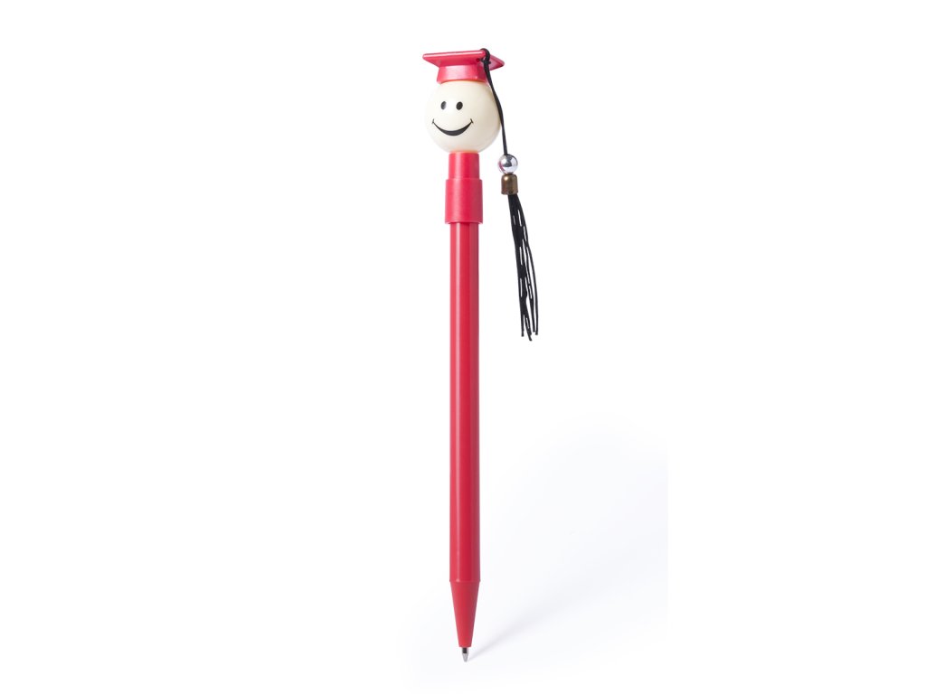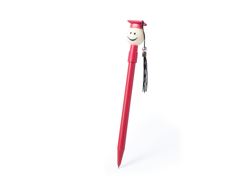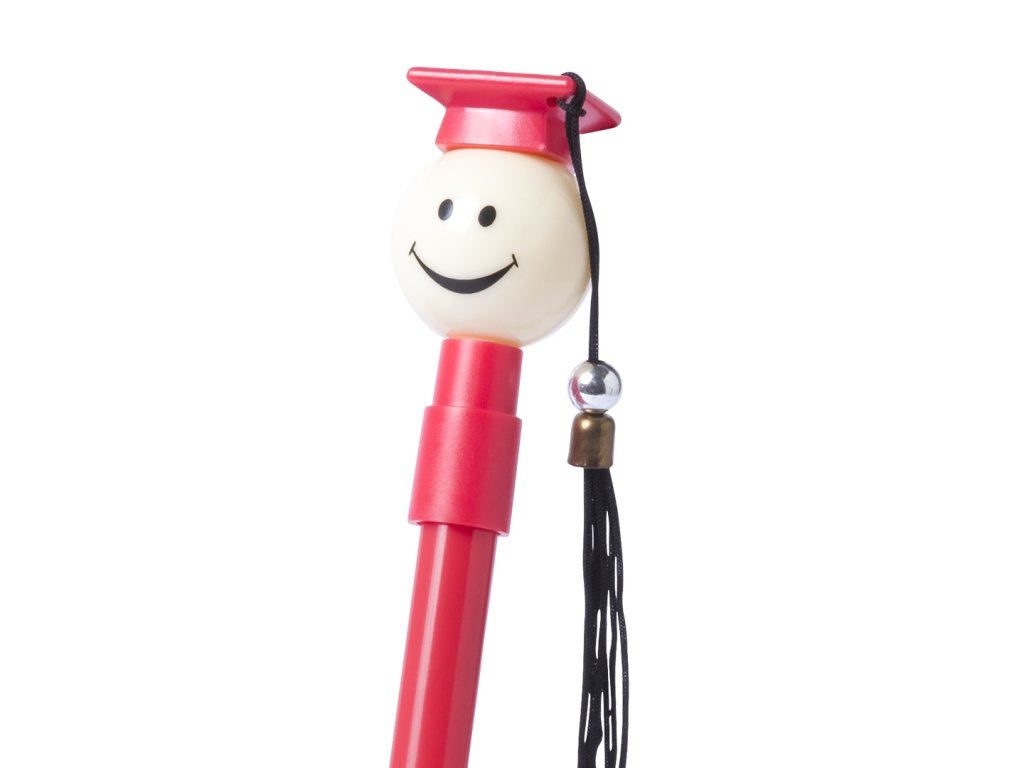 Zábavné kuličkové pero pro absolventy v široké škále světlých odstínů. S látkou s bambulí a modrým inkoustem.