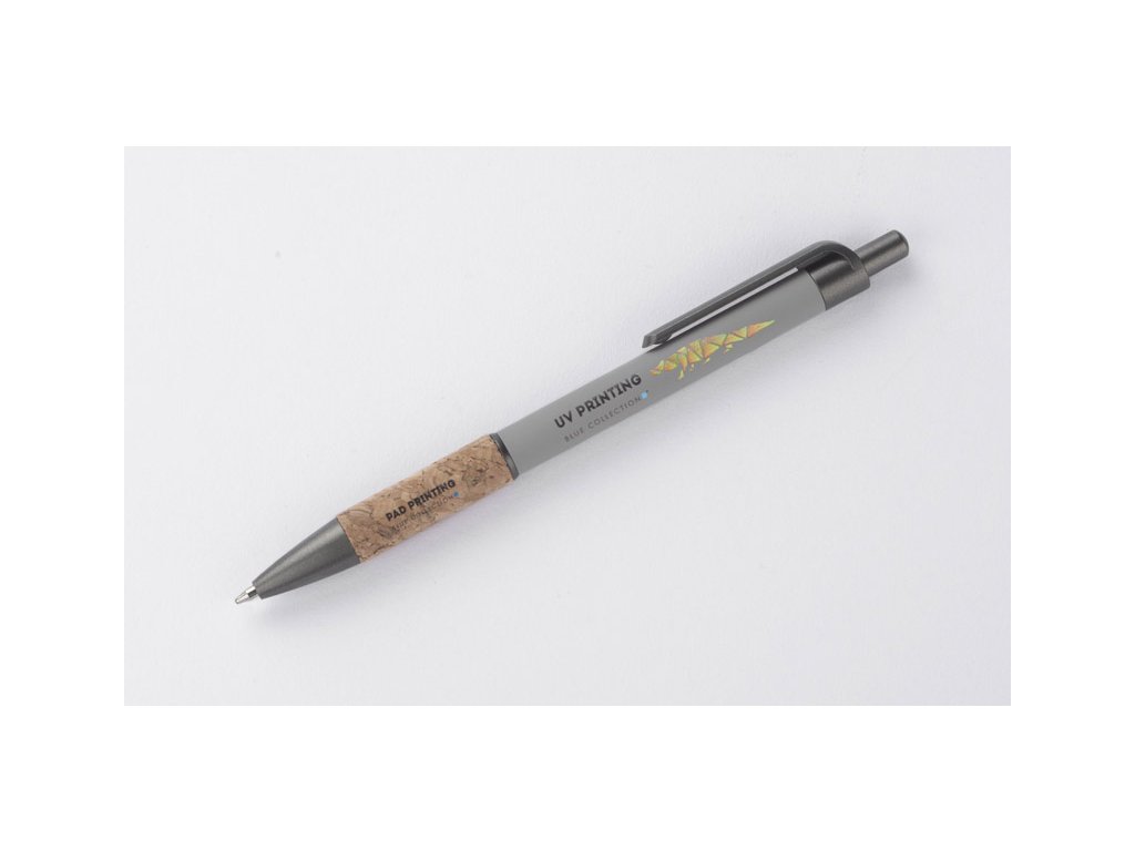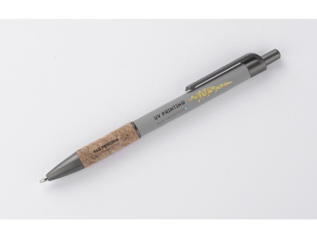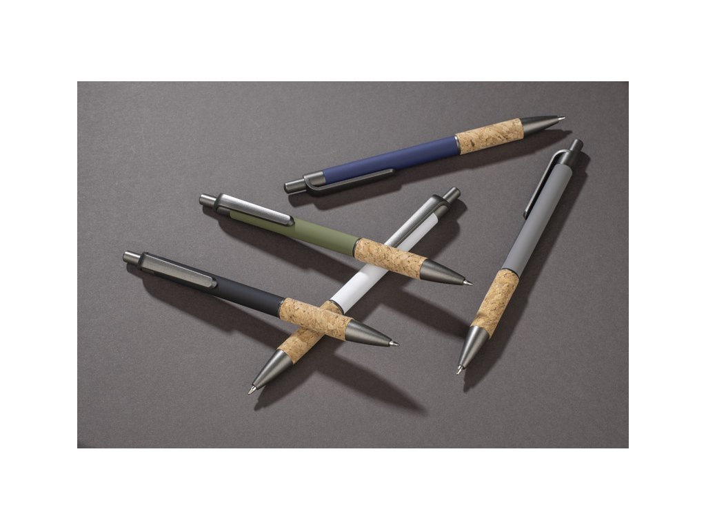 Kuličkové pero KUBOD je klasický model s jednoduchým, elegantním tvarem, který je ideální pro tvorbu značky. Hliníkové tělo je potaženo matnou vrstvou soft-touch pro větší pohodlí při používání. Přírodní korek v oblasti úchopu přitahuje pozornost a odlišuje výrobek od standardních modelů. Kovové plastové akcenty dodávají moderní nádech. Pero má automatický mechanismus a dodává se s modrou náplní typu X20 (vyměnitelná, není k dispozici v naší nabídce).Doplňkové parametry
