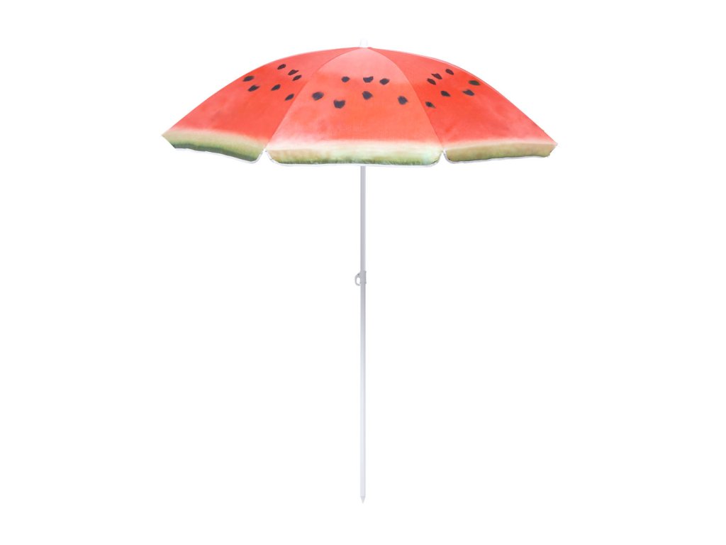 Barevný plážový deštník s motivy ovoce. průměr 150 cm, 8 panelů z odolného nylonu a boční sukně s lemováním. Kovové trubky s bílým nátěrem a nastavitelnou výškou. Dodáváno v průhledné tašce s popruhem přes rameno.Buďte první, kdo napíše příspěvek k této položce.
