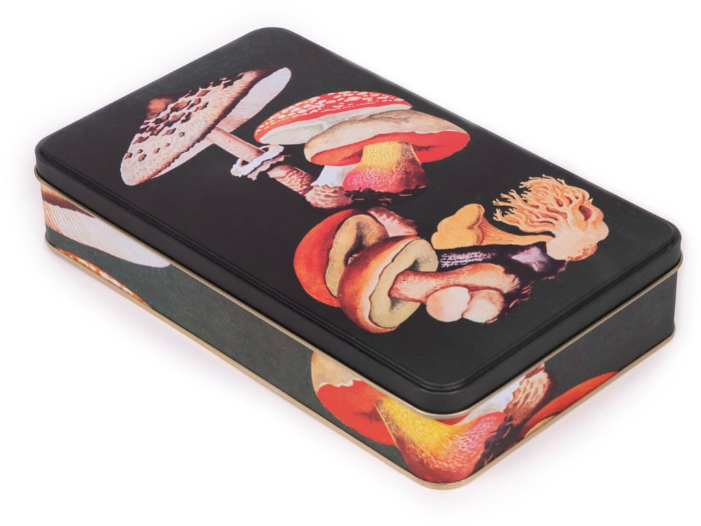 Stylové dóza Houby inspirovaná oblíbeným Zábavným kalendářem Kateřiny Winterové. Tato dóza má všestranné praktické využití. Můžete do ní uložit vánoční cukroví či jiné potraviny, nejrůznější poklady nebo drobnosti. Dóza je vyrobena ze 100% oceli s cínovou vrstvou.Doplňkové parametry