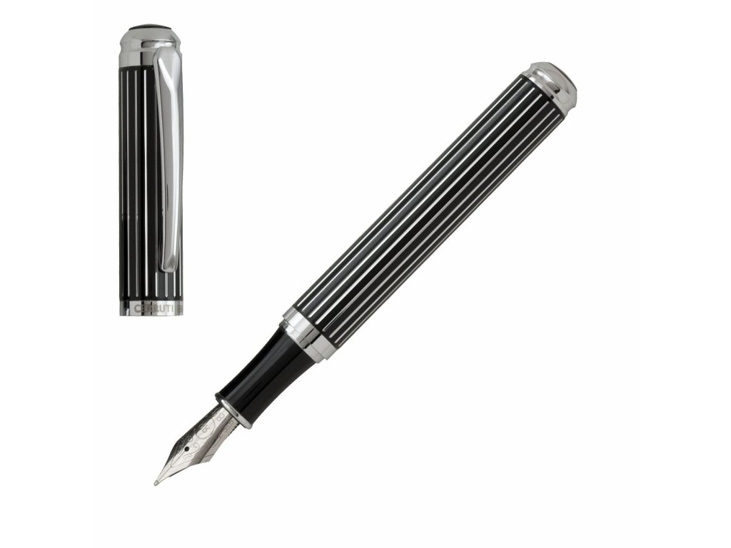 Značkové plnící pero CERRUTI 1881 Symbolic má matné černé tělo, zdobené podélnými zářezy stříbrné barvy Materiál: mosaz, chrom, lak Cena se zobrazuje po přihlášeníDoplňkové parametry