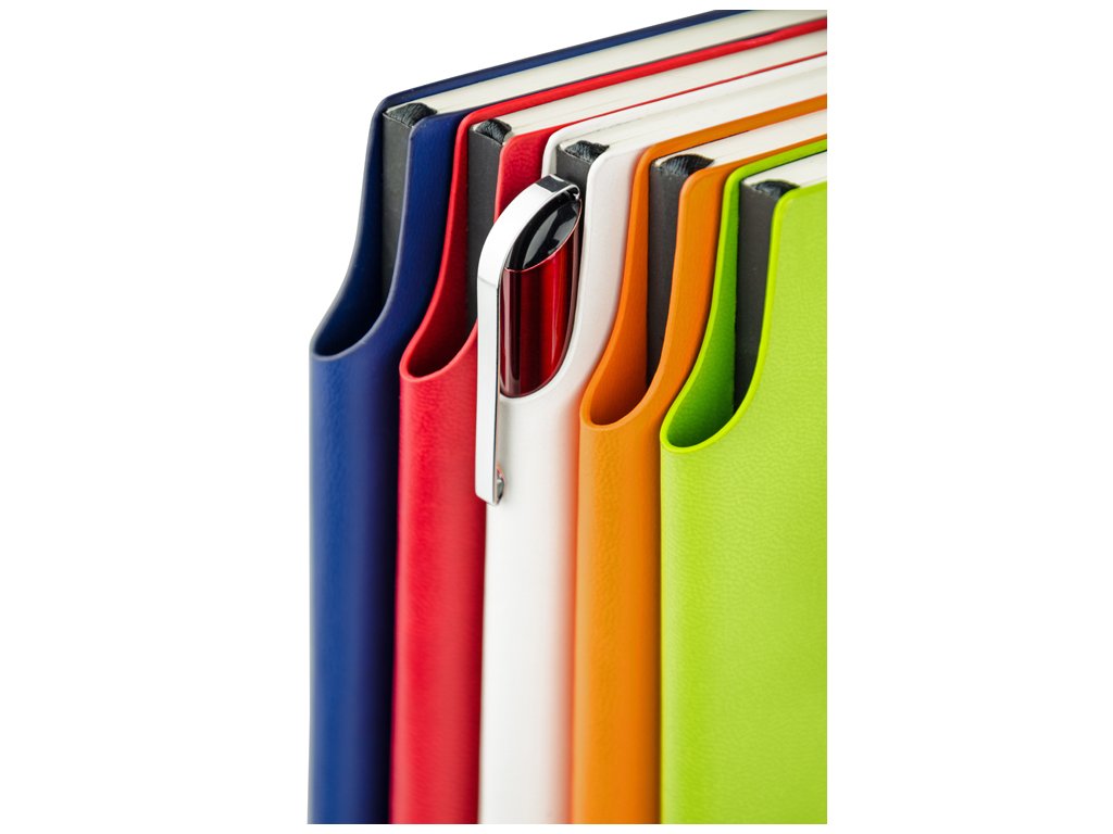 Zápisník MOLI ve formátu A5 v živých, módních barvách. Zápisník má 96 linkovaných stran a praktickou záložku se stužkou. Obal zápisníku je vyroben z měkkého materiálu podobného kůži (PU) a není pevný. Uvnitř hřbetu zápisníku je zajímavě řešené pouzdro na pero.Doplňkové parametry