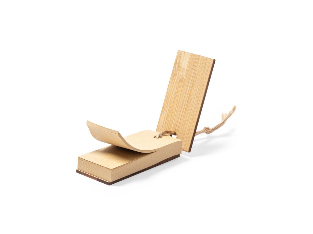 Držák na poznámkové bloky Nature line s bambusovými tvrdými deskami a jutovou šňůrou. Obsahuje 80 samolepicích poznámek s kraftovou povrchovou úpravou.