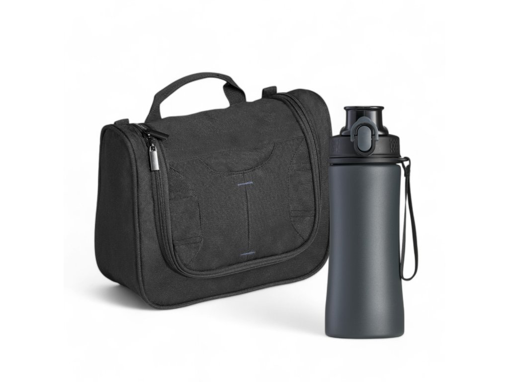 Sada Primo je dokonalou kombinací na každou cestu. Ocelová láhev z vysoce kvalitní nerezové oceli 18/8 POSCO zaručuje odolnost a bezpečnost. Ergonomický tvar zajišťuje pevný úchop a mechanismus pro otevírání jedním kliknutím umožňuje rychlý přístup k nápoji. Prostorná cestovní kosmetická taška je vybavena velkou přihrádkou s mnoha děleními na kosmetiku a léky. Zip a plastový háček usnadňují použití, barevné švy dodávají jemnou eleganci. Sada je zabalena v elegantní fólii.Doplňkové parametry