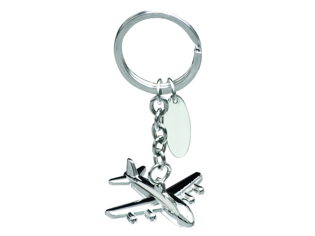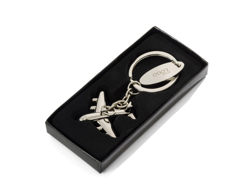 Klíčenka - mini letadlo se unikátním 3D tvar. Je vyrobeno z chromovaného kovu, baleno individuálně do černé lepenkové krabice. Logo může být vyryto na kovové desce, která je spolu s letadlem připevněna na kruhu.Doplňkové parametry
