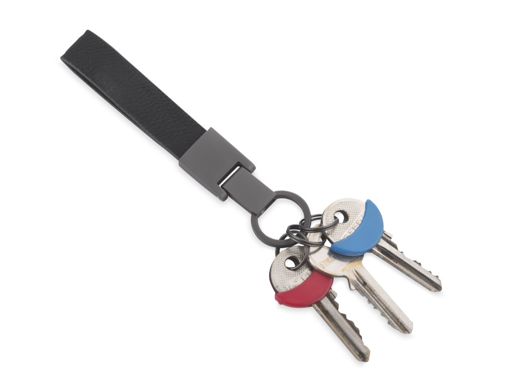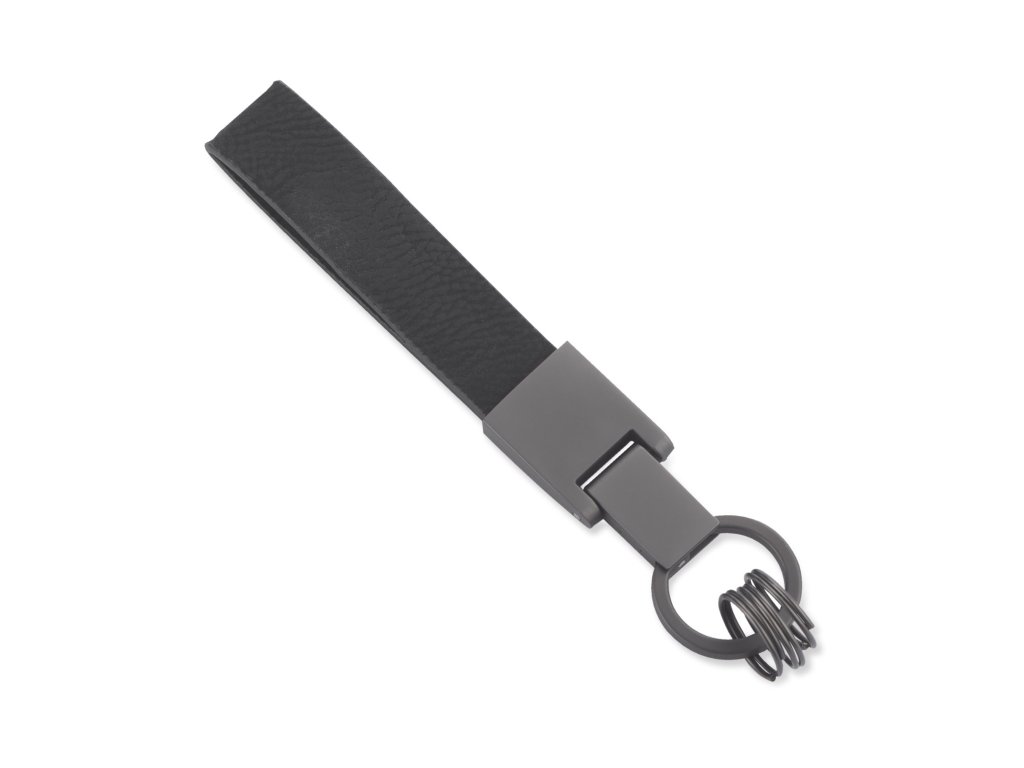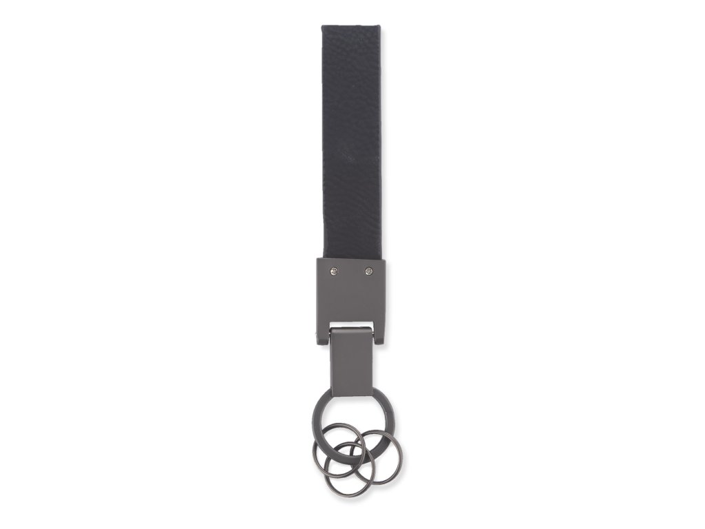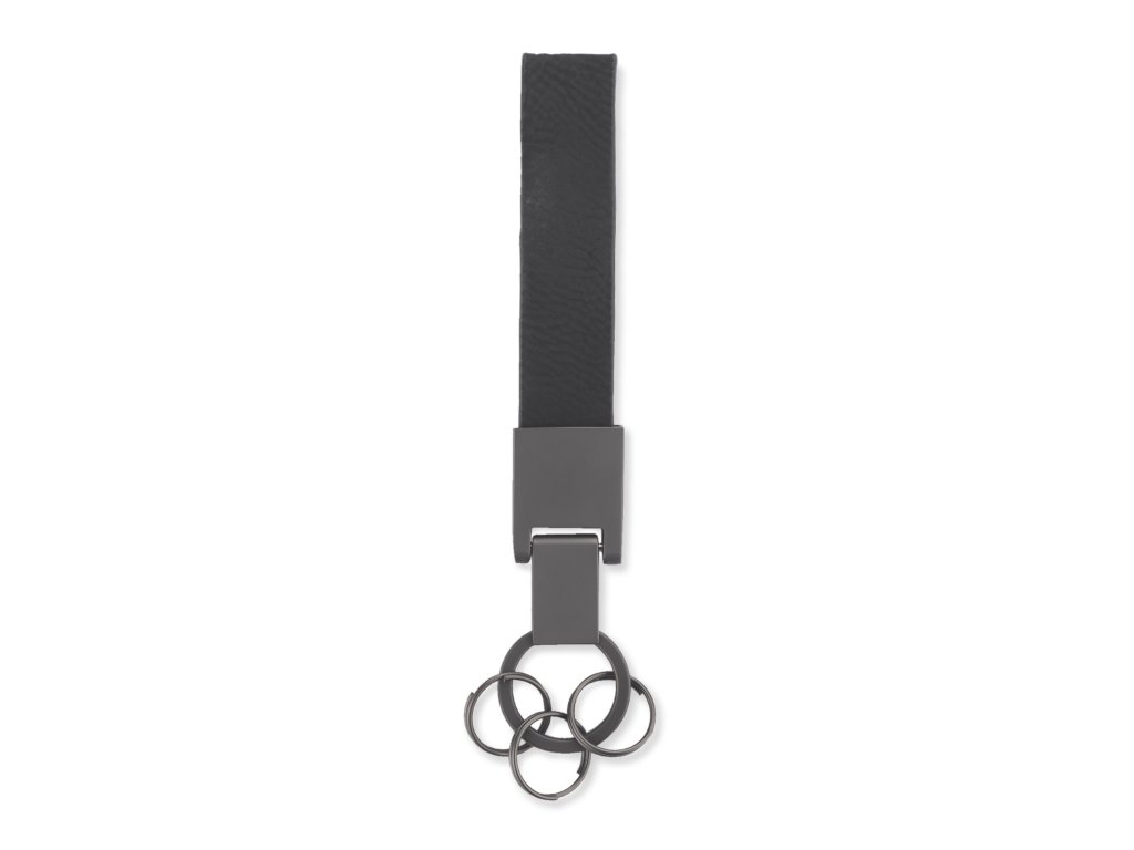 Klíčenka DERI je elegantní reklamní předmět vyrobený z vysoce kvalitní ekologické kůže s tmavými kovovými detaily. Její minimalistický design a tři přidané kroužky umožňují snadnou organizaci klíčů nebo připevnění doplňků. Klíčenka je balena v elegantní kartonové krabičce, což z ní činí ideální firemní dárek.Doplňkové parametry