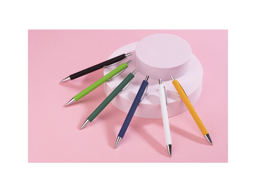 Propiska NOVI s příjemným na dotek gumovaným povrchem a chromovanými prvky stříbrné barvy. Náplň modré barvy.Doplňkové parametry