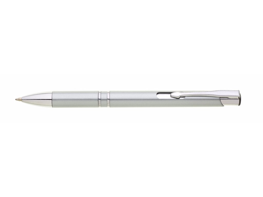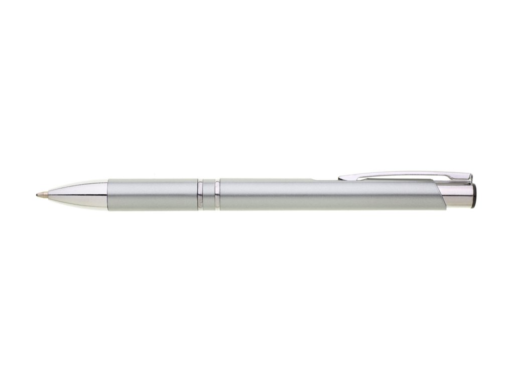 Plastové propisovací pero OIRA - stříbrné. Pero je zdobené dvěma stříbrnými proužky. Na těle je zdobeno oválným výřezem. Pero má náplň velkoobsahovou, modře píšící.Doplňkové parametry