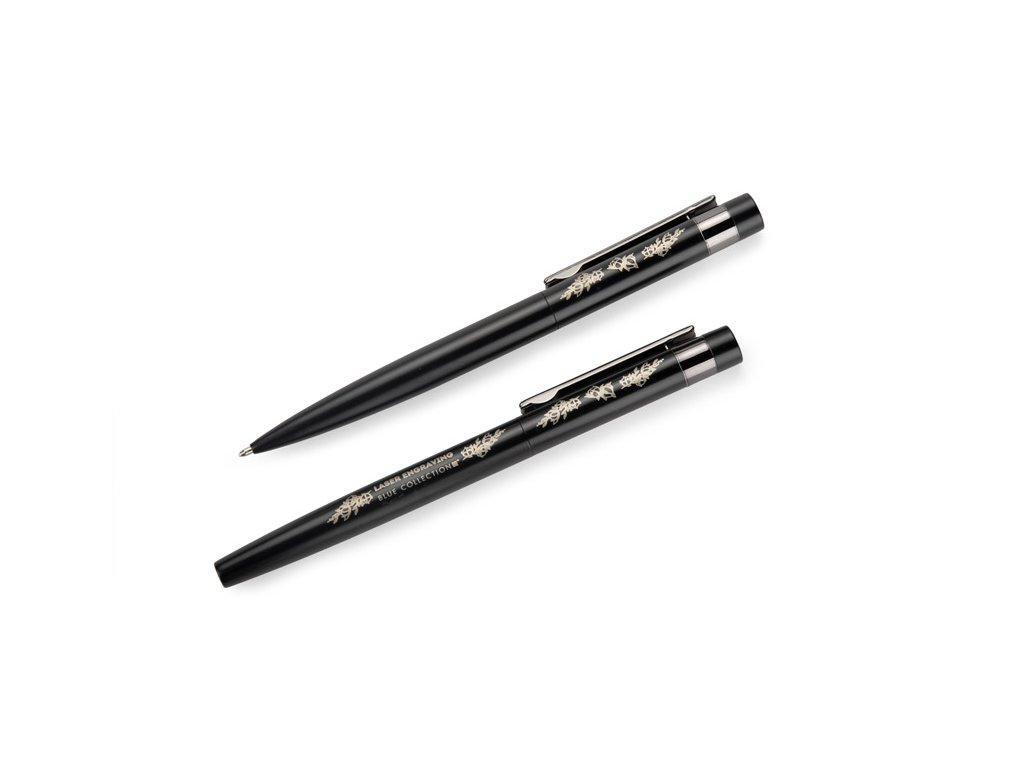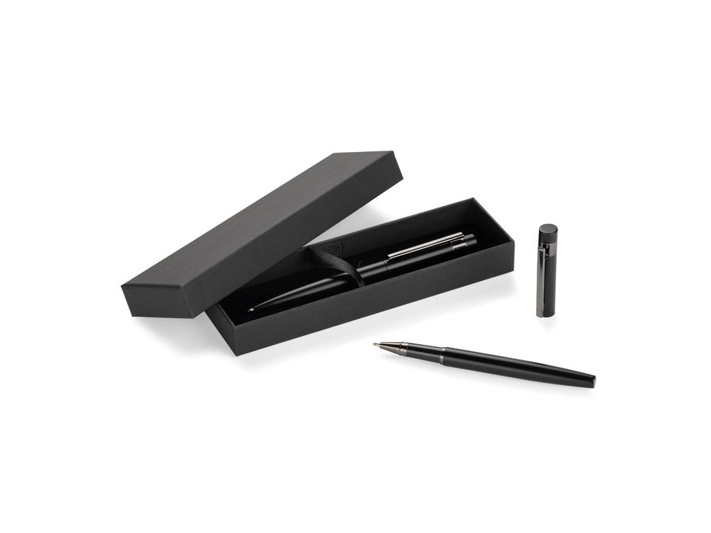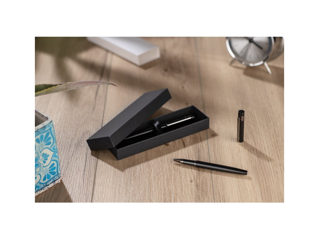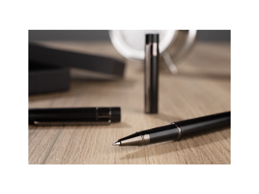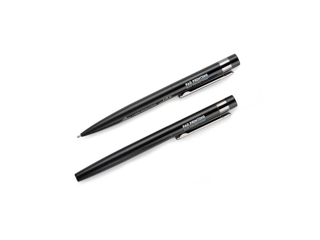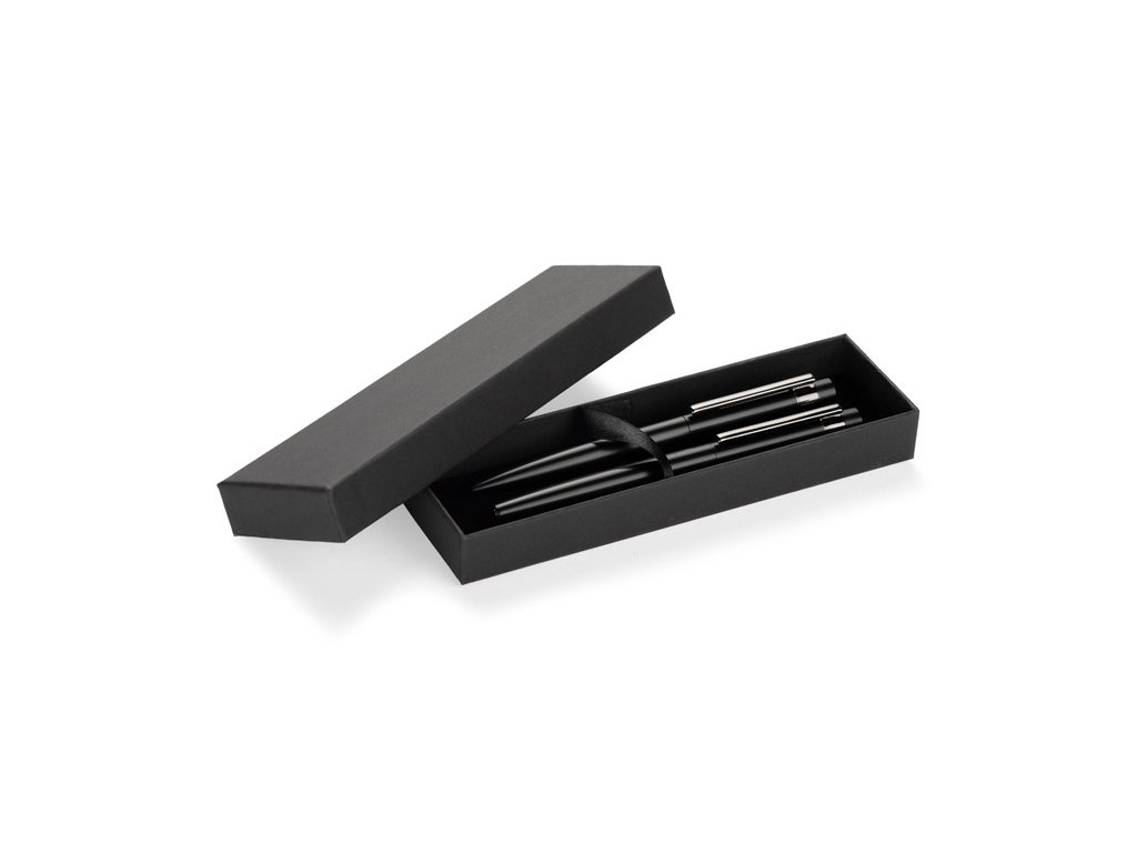 Psací souprava ZILE v pouzdře obsahuje kovové biro a kuličkové pero s moderní povrchovou úpravou. Celá sada je doplněna elegantním tmavě šedým klipem, který dodává sadě profesionální nádech. Vynikající volba pro firemní dárek.Doplňkové parametry