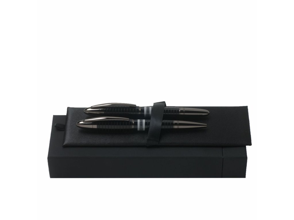 Značková psací souprava CERRUTI 1881 Central Resin obsahuje kuličkové pero a roller. Pera kombinují tmavě šedé tělo s pravidelnými kroužky a temně chromovaným prstencem na víčku, klipem a špičkou. Materiál: mosaz, chrom, lak Cena se zobrazí po přihlášeníDoplňkové parametry