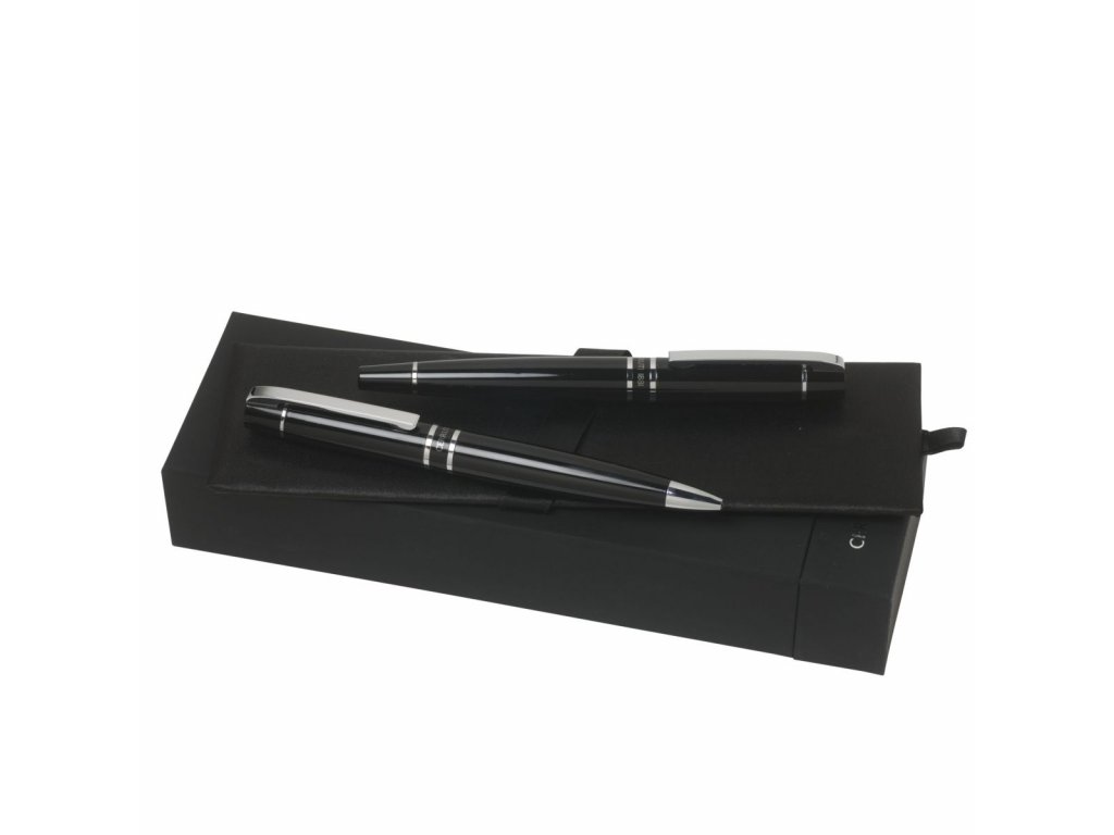 Značková psací souprava CERRUTI 1881 Editorial obsahuje roller a kuličkové pero. Kombinuje lesklé černé tělo s chromovanými kroužky, klipem a zakončením. Materiál: mosaz, chrom, lak Cena se zobrazí po přihlášeníDoplňkové parametry
