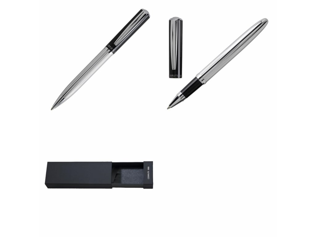 Značková psací souprava CERRUTI 1881 Lodge obsahuje kuličkové pero a roller. Pera se vyznačují kombinací lesklého gravírovaného chromu a šedě lakovaného víčka. Materiál: mosaz, chrom, lak Cena se zobrazí po přihlášeníDoplňkové parametry