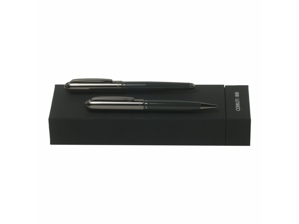 Značková psací souprava CERRUTI 1881 Miles obsahuje kuličkové pero a roller. Pera mají modře lakovaný úchop a leštěné, chromované víčko s doplňky. Materiál: mosaz, chrom, lak Cena se zobrazí po přihlášeníDoplňkové parametry