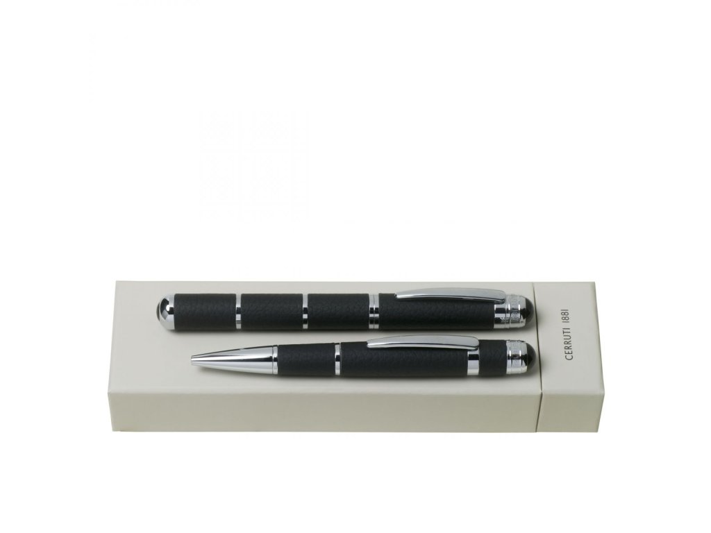 Značková psací souprava CERRUTI 1881 Milton obsahuje kuličkové pero a roller. Povrch těla pera je pokryt kvalitní kůží v matné černé barvě. Zakončení, prstence a klip jsou chromované Materiál: mosaz, chrom, kůže Cena se zobrazí po přihlášeníDoplňkové parametry