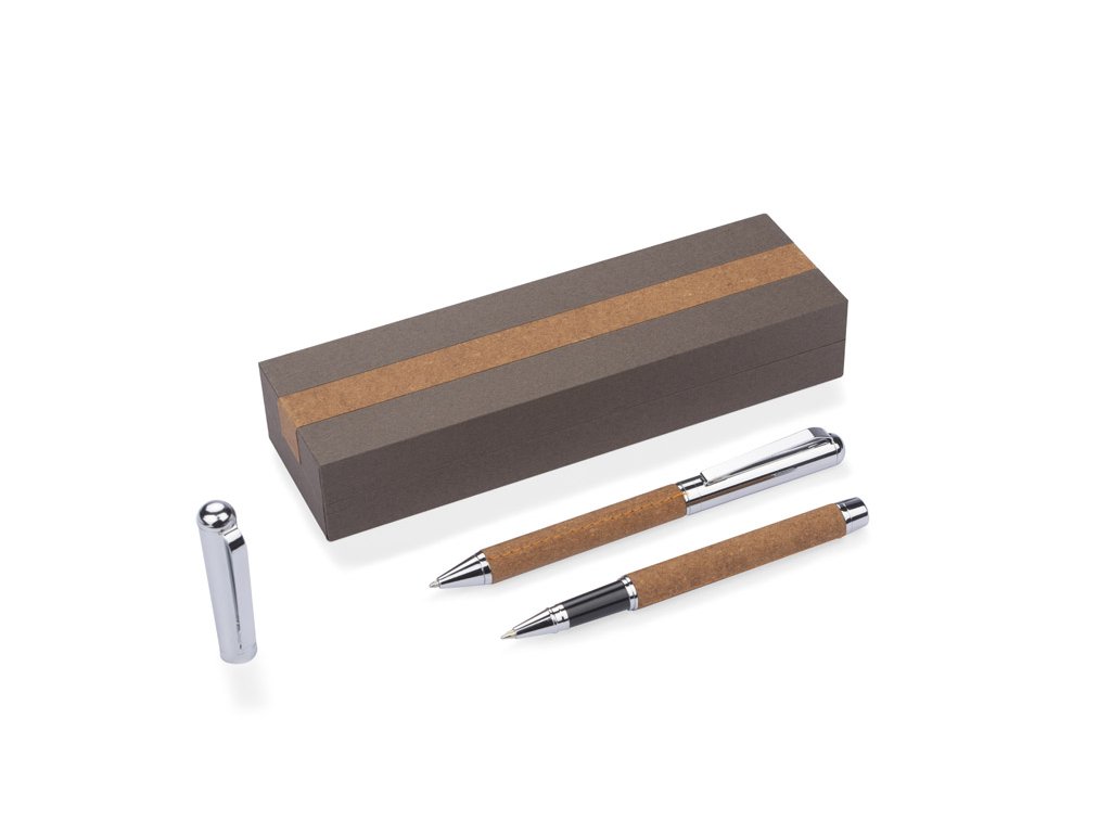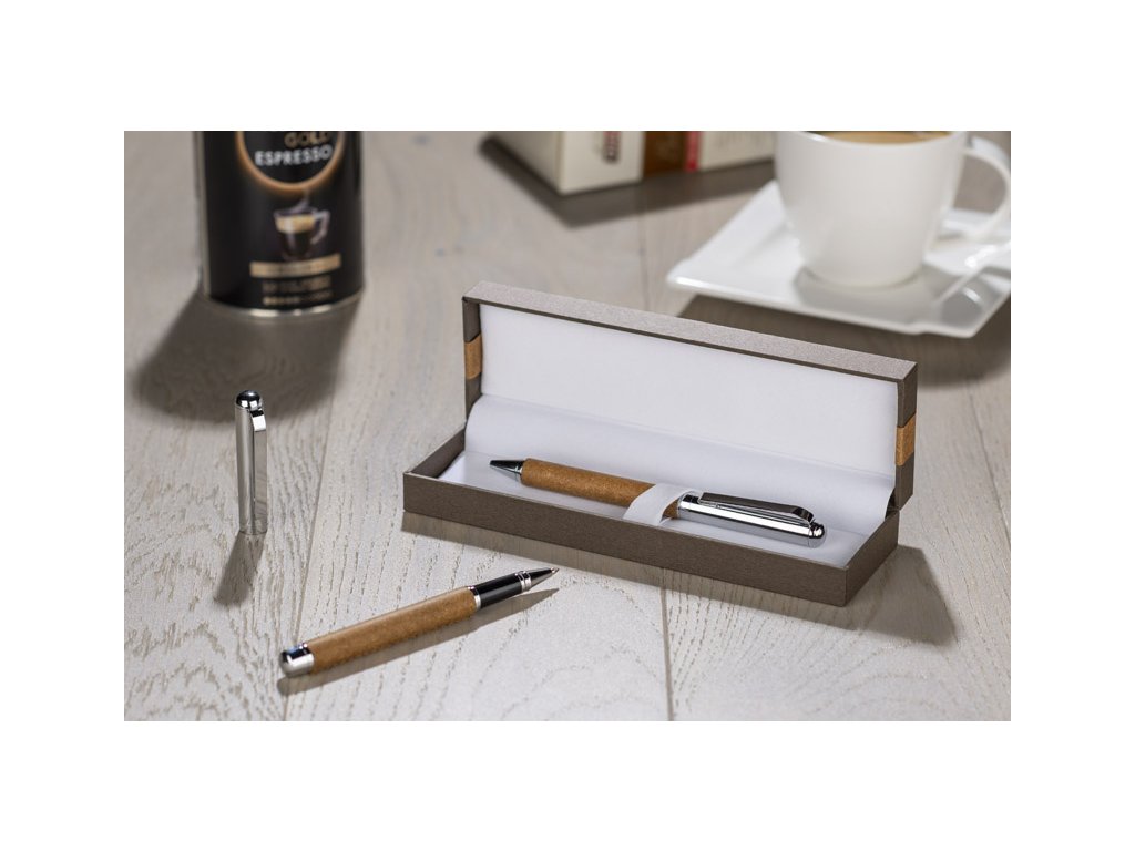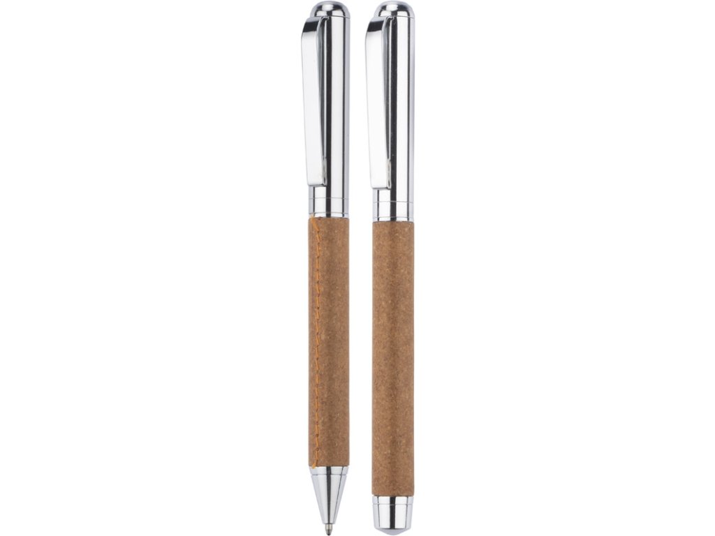 Sada OHIO je elegantní psací souprava odkazující na ekologické trendy. Kovová těla obou per jsou zakončena recyklovanou přírodní kůží. Chromované ozdoby dokonale ladí s přírodním materiálem na těle. Sada obsahuje pero a roller. Modré náplně. Sada je zabalena ve vkusné krabičce z papíru. Víko je zdobeno recyklovanou kůží.Doplňkové parametry