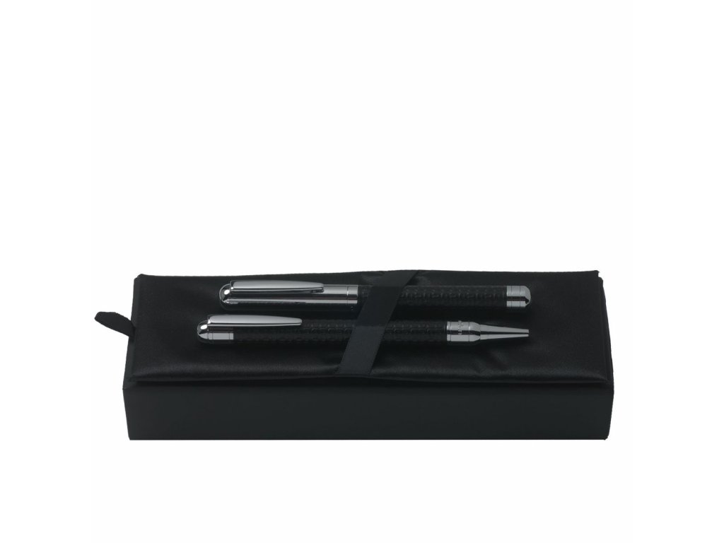 Značková psací souprava Ungaro Uuuu Homme obsahuje kuličkové pero a roller. Má matné černé tělo, které je poseto plastickými, různě natočenými písmeny U. Zakončení a klip jsou chromované. Materiál: mosaz, chrom, lak Cena se zobrazí po přihlášeníDoplňkové parametry