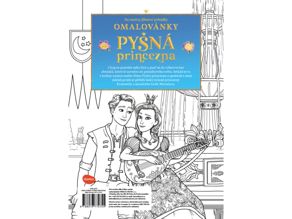 Znáte Pyšnou princeznu, legendární český film na motivy pohádky Potrestaná pýcha od Boženy Němcové? Tak tenhle příběh nafoukané princezny Krasomily a moudrého krále Miroslava, který se do ní zamiloval a rozhodl se ji napravit, se dočkal úplně nového zpracování. Vidět ho můžete v kině jako animovaný film – anebo si pořiďte naše omalovánky! Jsou plné krásných obrázků, které si můžete sami vybarvit, a jednoduchý doprovodný text vám převypráví příběh lásky princezny Krasomily a krále Miroslava. Seznamte se s hrdiny animované pohádky Pyšná princezna!Doplňkové parametry