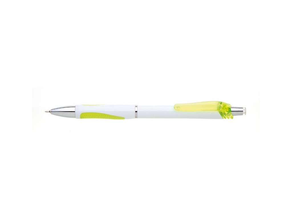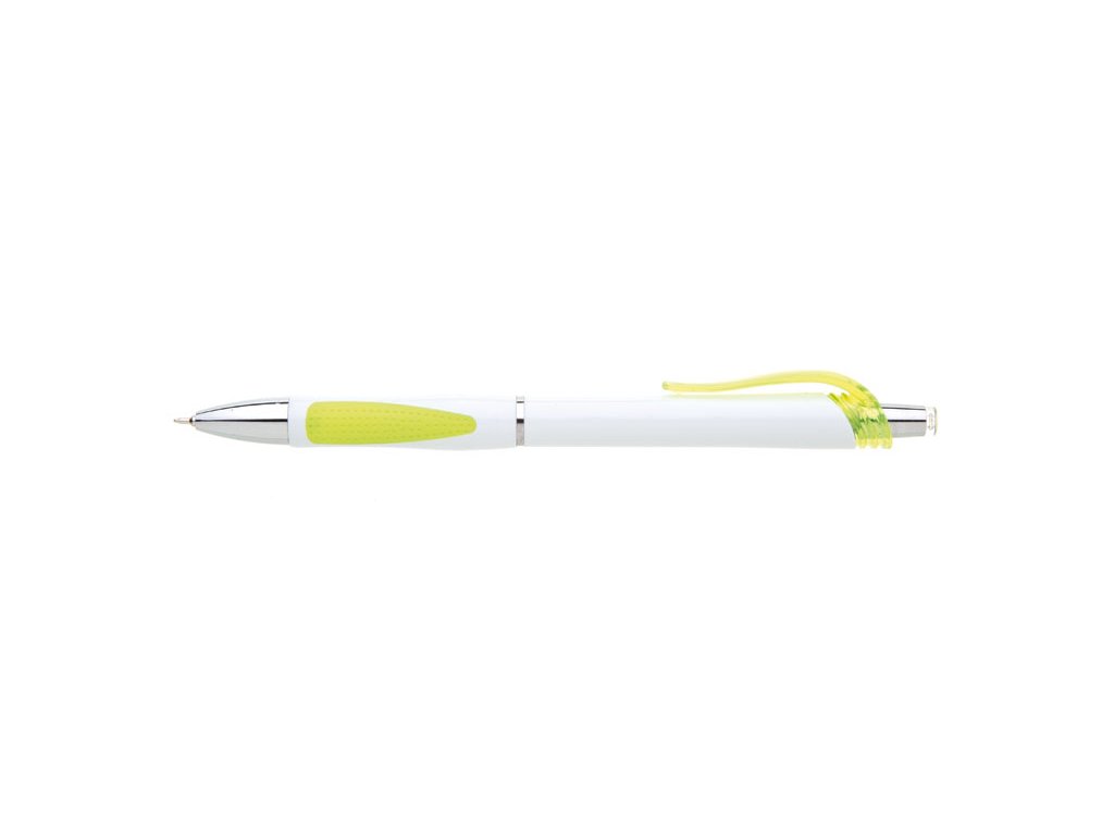 Bílá, plastová propiska s pochromovanými doplňky jako jsou klip, tělo cvakátka a proužek uprostřed těla tužky. Grip je světle zelený, částečně pogumovaný, stejně jako klip. Náplň X20, hrot 0,5mm.Doplňkové parametry