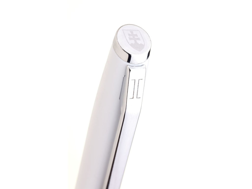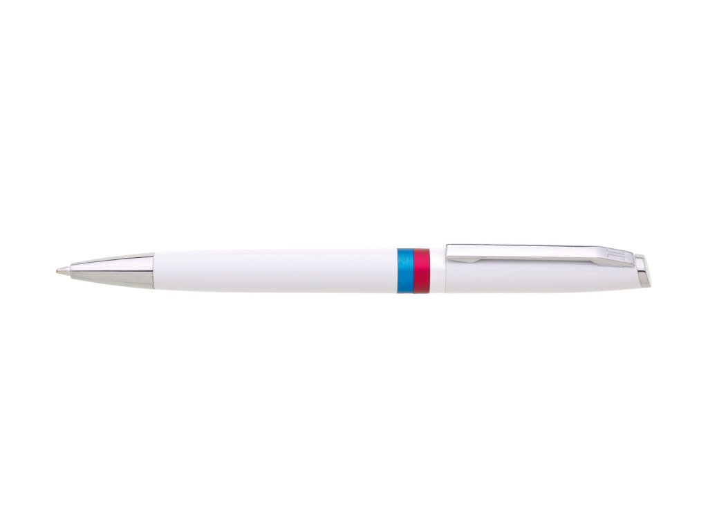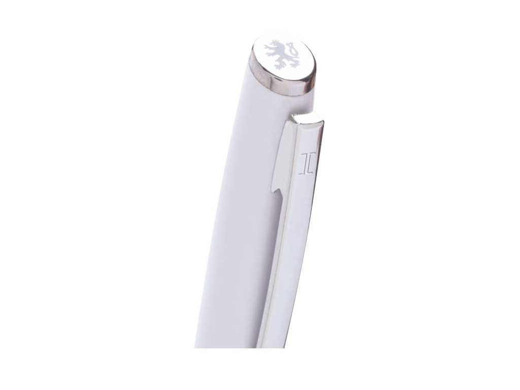 Bílá otočná propiska s trikolórou a tiskem lva. Náplň velkoobsahová, modře píšící.Doplňkové parametry
