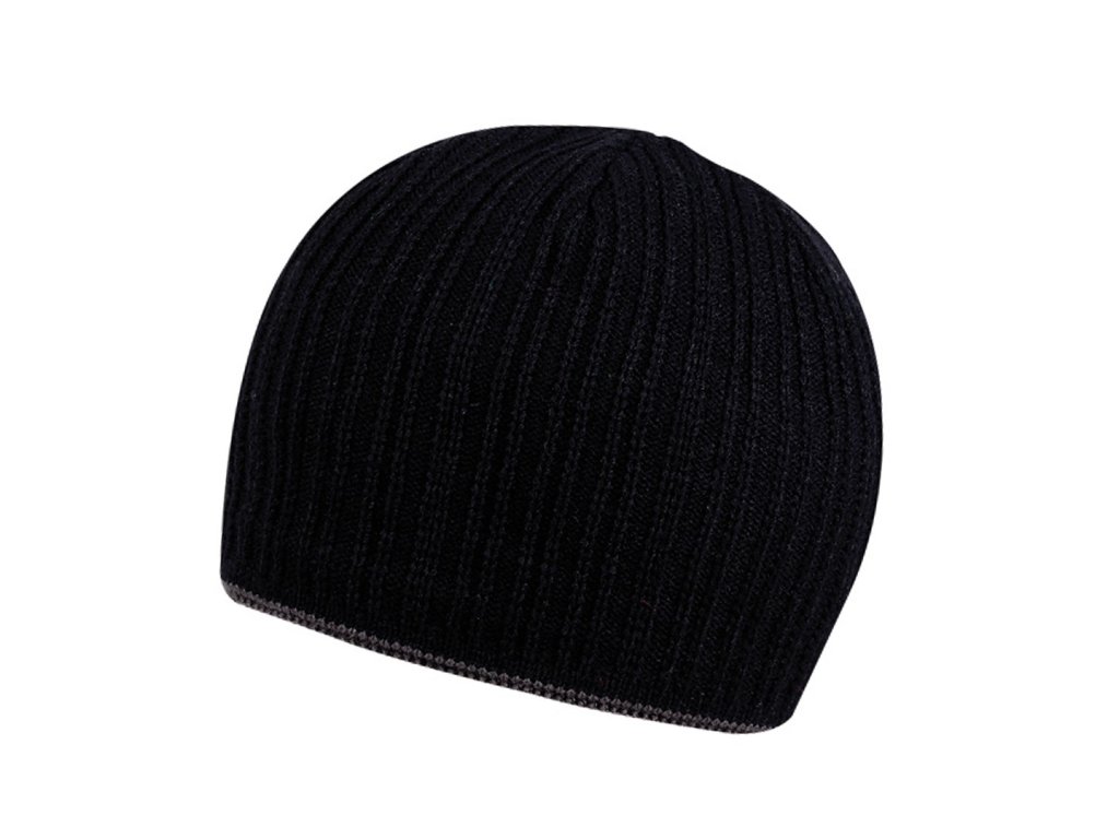 Polar fleece podšívka. Jednoduchá černá zimní čepice s kontrastním pruhem ve spodní části.