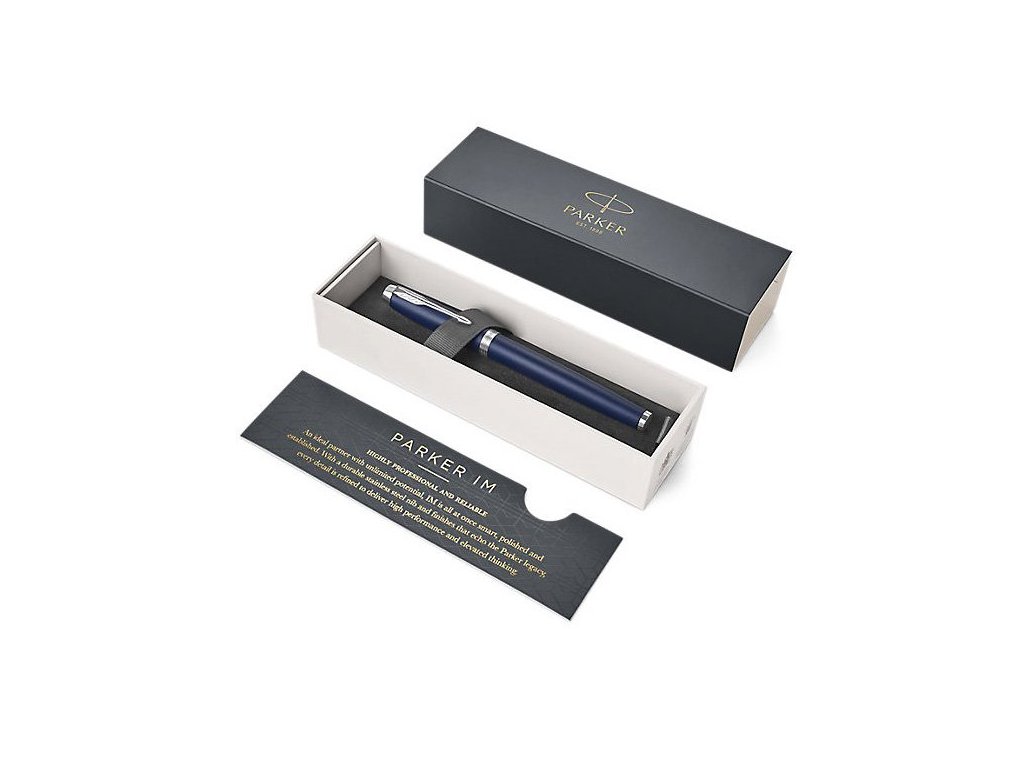 Značkový roller PARKER IM Blue CT má mosazné tělo i nasazovací víčko matně modře lakováno. V kombinaci s doplňky pokovenými chromem s leštěnou úpravou. Parker IM je ideální partner s neomezenými možnostmi.Doplňkové parametry