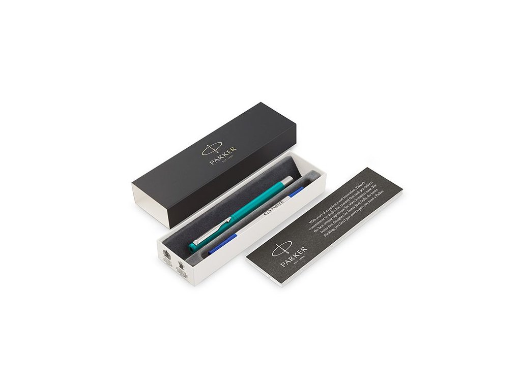 Značkový roller PARKER Royal Vector Emerald má tělo i nasazovací víčko z tvrzeného tyrkysového plastu s doplňky z nerezové oceli. Vector je psacím nástrojem, kterému lze beze zbytku důvěřovat.Doplňkové parametry