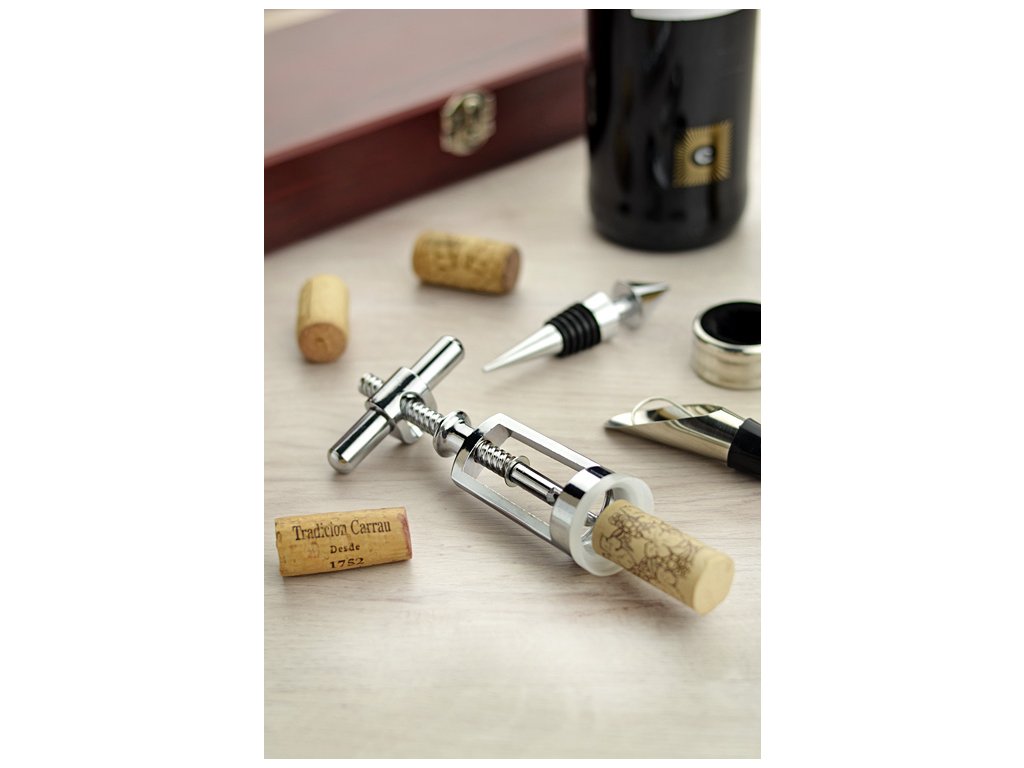 Sada na víno zahrnující otvírák na víno, 2 uzávěry (jeden s funkcí nalévání), prsteny na víno. Vše je zabaleno v elegantní dřevěné krabici. Logo bude vyryto na krabici.Doplňkové parametry