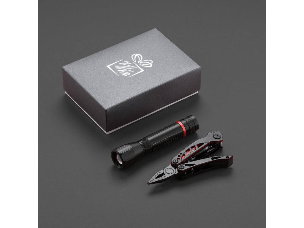 Univerzální sada s titanově povlakovaným multitoolem a výkonnou LED svítilnou, ideální na cesty, venkovní aktivity i každodenní použití. Multitool nabízí řadu funkcí, zatímco odolná, voděodolná svítilna poskytuje nastavitelné osvětlení s dosahem až 200 m.Doplňkové parametry