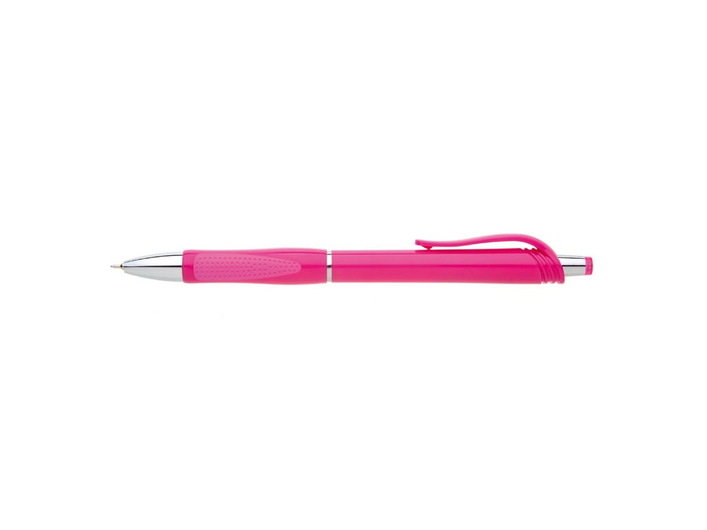 Růžová, plastová propiska s pochromovanými doplňky jako jsou klip, tělo cvakátka a proužek uprostřed těla tužky. Grip je částečně pogumovaný v barvě tužky, stejně jako klip a vrchní část cvakátka. Náplň X20, hrot 0,5mm.Doplňkové parametry