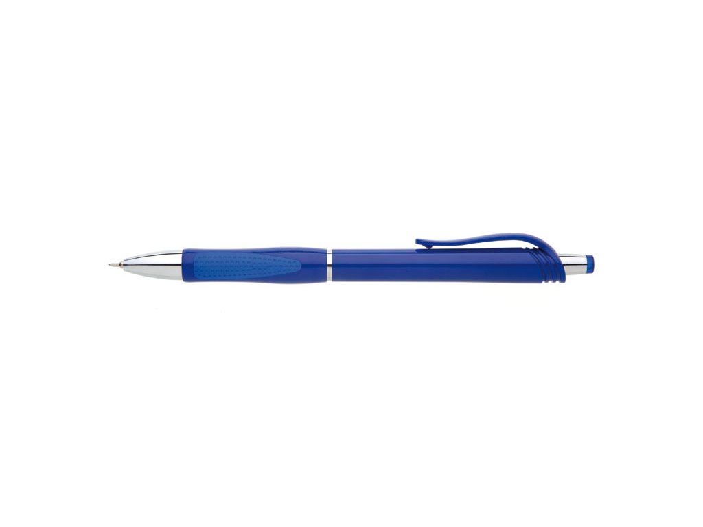 Modrá, plastová propiska s pochromovanými doplňky jako jsou klip, tělo cvakátka a proužek uprostřed těla tužky. Grip je částečně pogumovaný v barvě tužky, stejně jako klip a vrchní část cvakátka. Náplň X20, hrot 0,5mm.Doplňkové parametry