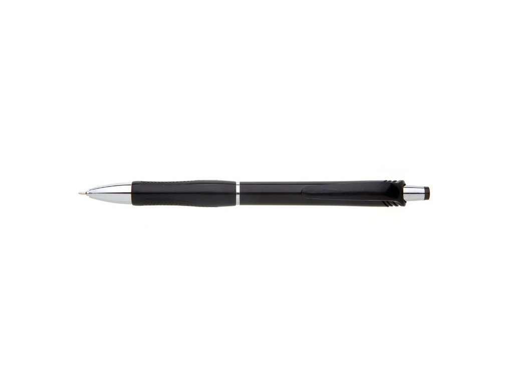 Černá, plastová propiska s pochromovanými doplňky jako jsou klip, tělo cvakátka a proužek uprostřed těla tužky. Grip je částečně pogumovaný v barvě tužky, stejně jako klip a vrchní část cvakátka. Náplň X20, hrot 0,5mm.Doplňkové parametry