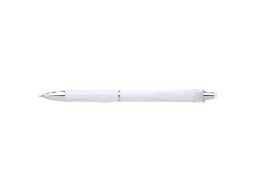 Bílá, plastová propiska s pochromovanými doplňky jako jsou klip, tělo cvakátka a proužek uprostřed těla tužky. Grip je částečně pogumovaný v barvě tužky, stejně jako klip a vrchní část cvakátka. Náplň X20, hrot 0,5mm.Doplňkové parametry