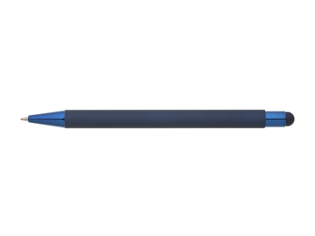 Modré pogumované matné tělo propisky doplňují lesklé doplňky v barvě těla a matný touch konec. Logo po vylaserování je lesklé stříbrné. Velkoobsahová modře píšící náplň.Doplňkové parametry
