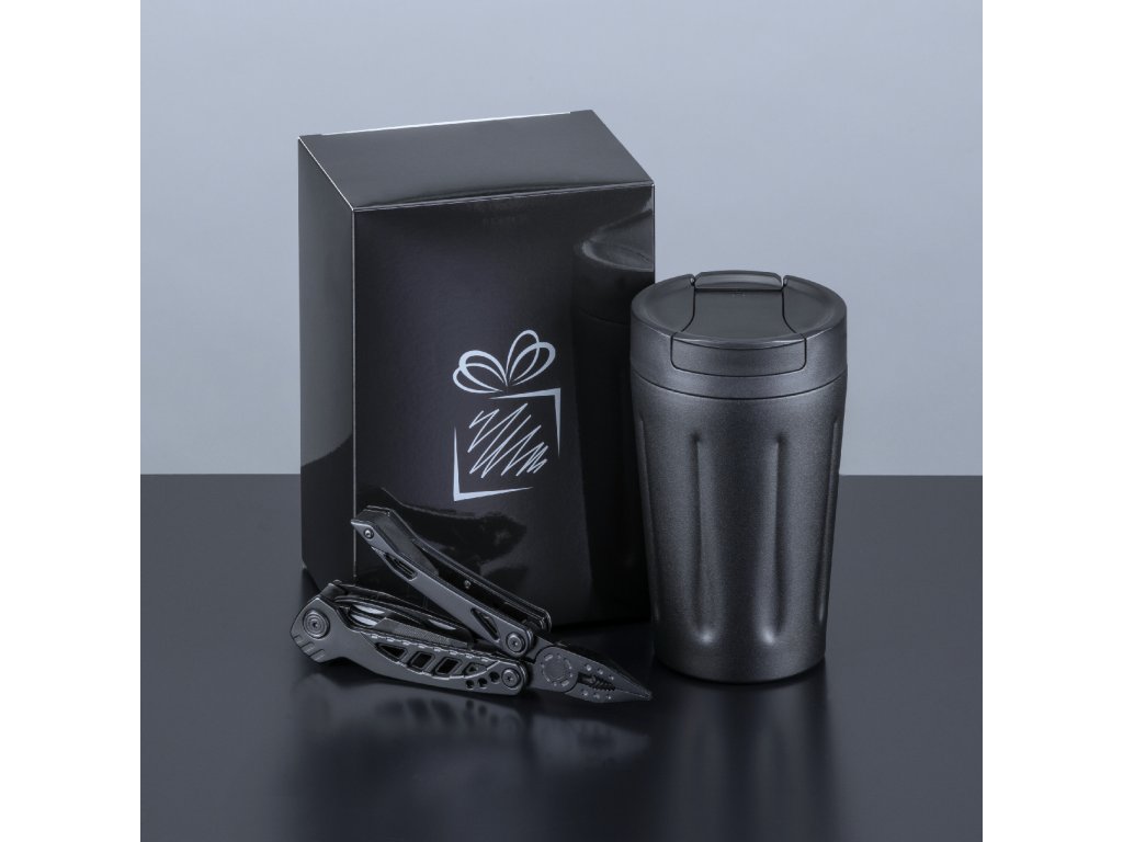 Sada pro řidiče obsahuje termální hrnek a multifunkční nástroj. Termální hrnek Scandic nabízí vynikající izolační vlastnosti (až 12 hodin pro studené nápoje, až 6 hodin pro teplé nápoje). Jeho ergonomický tvar a práškový povrch zajišťují bezpečné uchopení. Multifunkční nástroj Optima je vyroben z vysoce kvalitní nerezové oceli s titanovým povlakem, který zvyšuje odolnost proti korozi. Obsahuje barevné vložky na rukojeti pro decentní dekoraci. Nástroj je vybaven vestavěným zámkovým mechanismem, který zabraňuje náhodnému zavření během používání. Zabaleno v černé dárkové krabičce.Doplňkové parametry